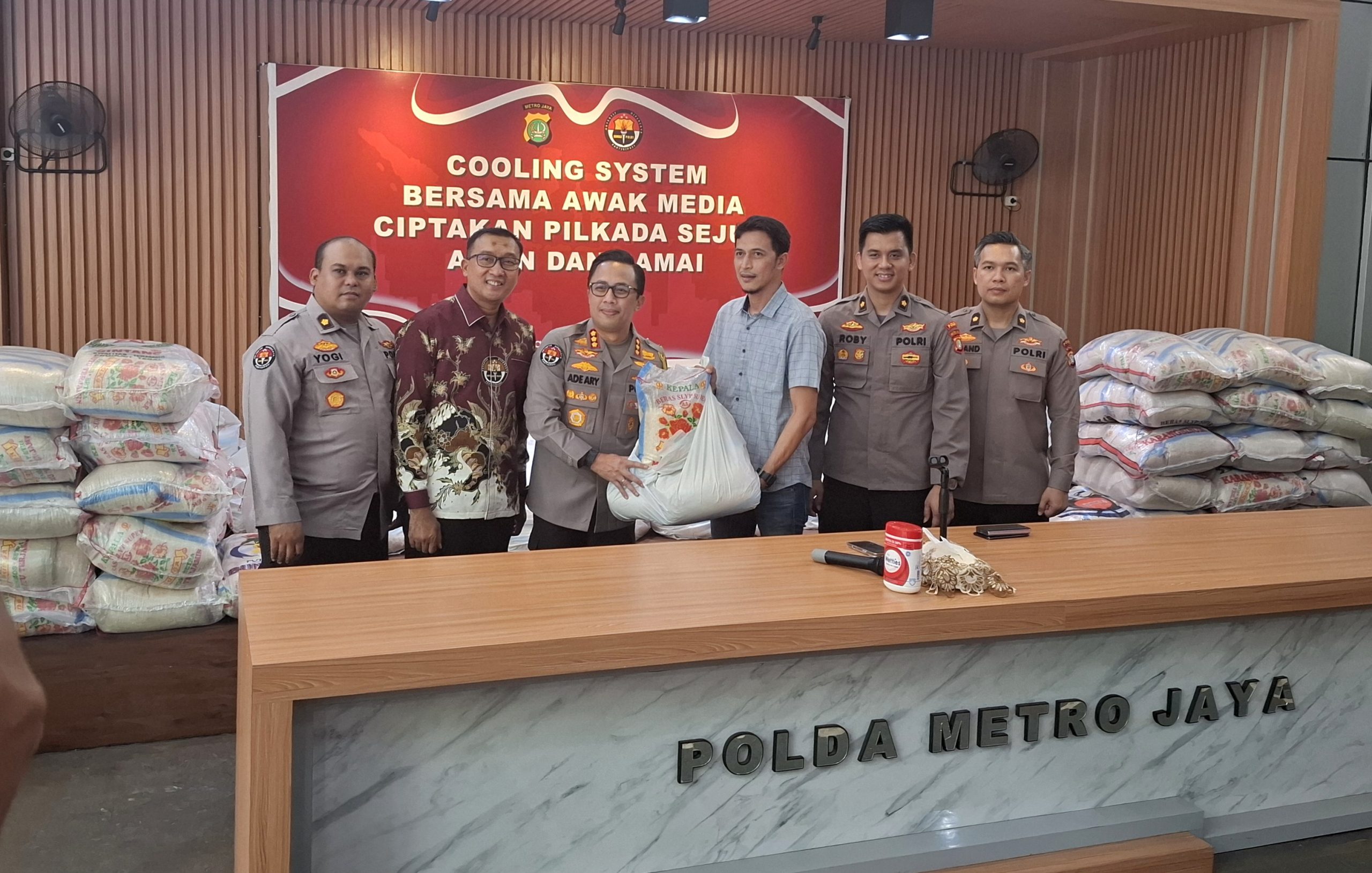Sebagai bentuk simbolis silaturahmi dan dukungan, Polda Metro Jaya juga membagikan sarana kontak berupa beras dari Kapolda Metro Jaya kepada para wartawan.