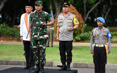 Monas – Dandim 0501/JP BS Letkol Inf Wahyu Yudhayana memimpin Apel Gelar Pasukan Dalam Rangka Operasi Kepolisian Terpusat Lilin Jaya 2018 bertempat di Lapangan Sepatu Roda, Monas, Gambir, Jakarta Pusat, Jumat (21/12/2018)