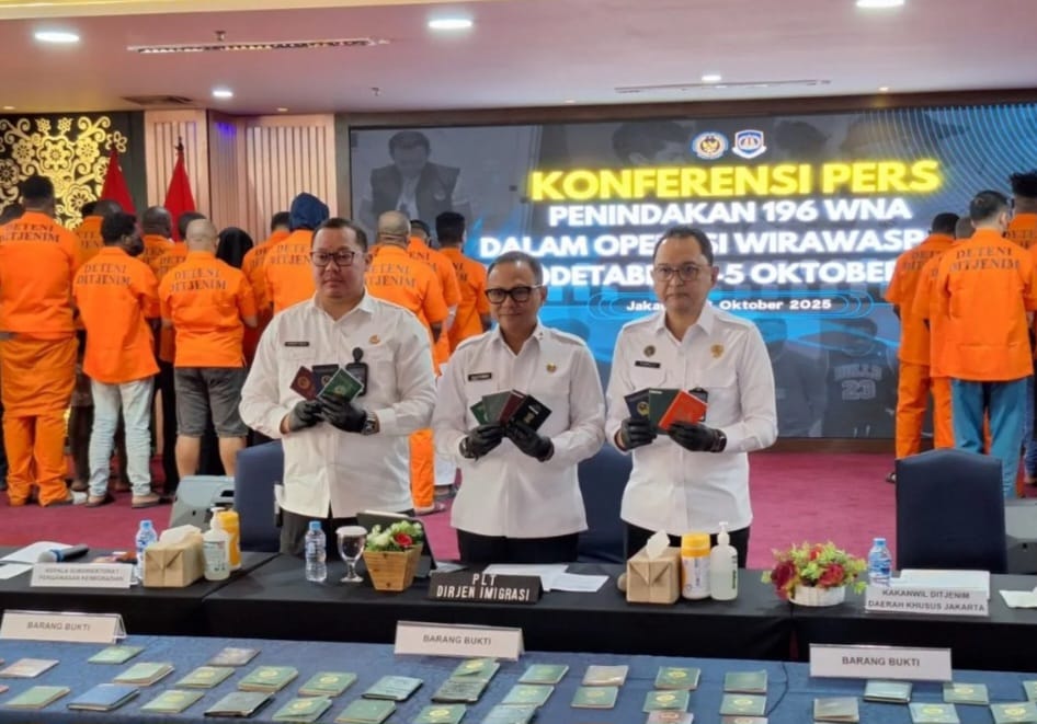 TOPIKONLINE.CO.ID, JAKARTA — Direktorat Jenderal (Ditjen) Imigrasi Kementerian Imigrasi dan Pemasyarakatan (Kemenimipas) menindak tegas 196 warga negara asing (WNA) yang terbukti melakukan berbagai pelanggaran keimigrasian dalam Operasi Wirawaspada yang digelar pada 3–5 Oktober 2025 di wilayah Jabodetabek.