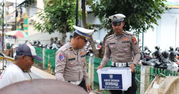 TOPIKONLINE.CO.ID – GRESIK: Sejumlah personel Satuan Lalu Lintas Polres Gresik terlihat turun langsung ke jalan membagikan makanan kepada warga yang membutuhkan. Aksi ini digelar dalam program rutin bertajuk Jumat Berkah, Jumat (16/5/2025).