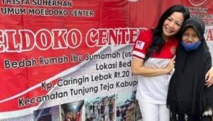 Foto: Ketum Moeldoko Center, Trisya Suherman saat kegiatan Moeldoko Center Peduli Kasih yaitu Bedah Rumah,…